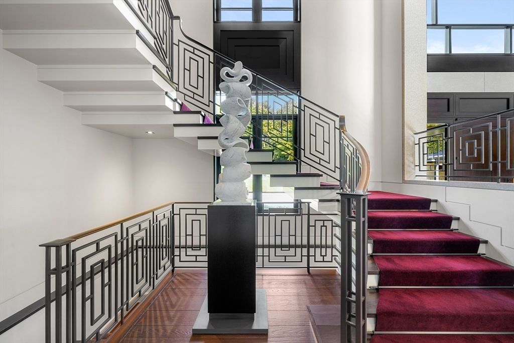 Introducing this Frank Llyod Wright inspired one-of-a-kind gem designed by award winning AD 100 architect, Thomas Catalano. Ultimate privacy on a 6+ acre property, adjacent to the Weston Reservoir, this estate cultivates the symmetry of nature with meticulously curated interiors. Galvanized steel finishes fuse the interior rooms with the exterior heated courtyards. Each space pays homage to its analogous setting from the glass window encased hallway to the elegant El Grotto which serves as the pool house. It is complemented by a fitness center, massage room, sauna, wine and game rooms. A luxurious primary suite has a sitting room with a fireplace,...read more